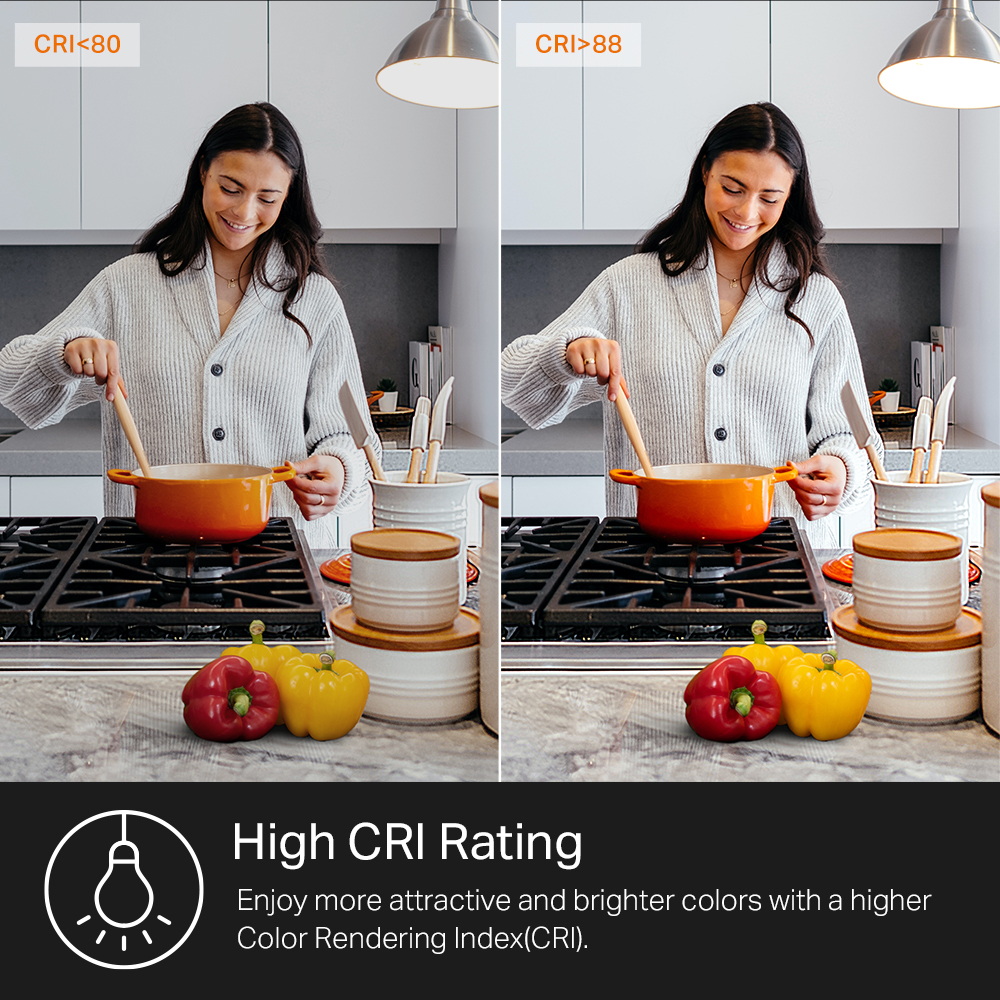 High CRI Rating provides more attractive and brighter colors to help you see the true color spectrum throughout your home.