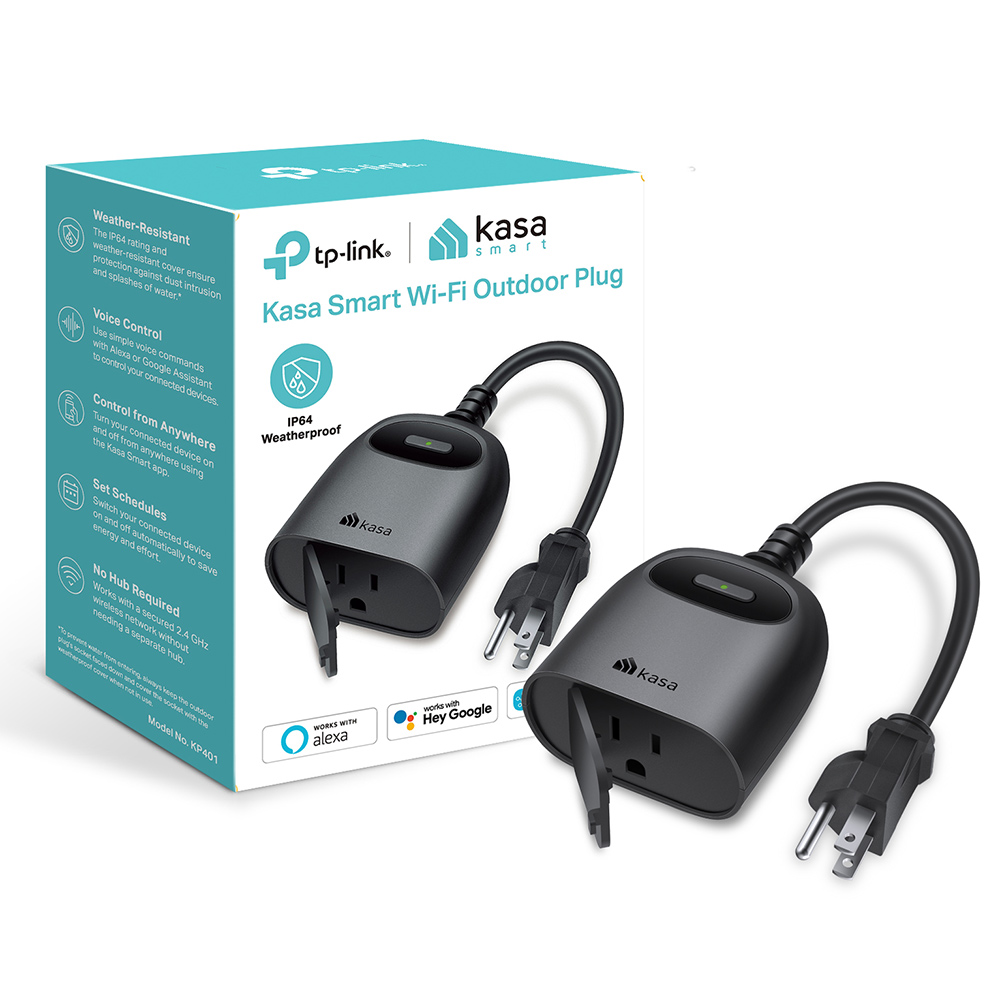 Kasa Smart Outdoor Plug, IP64 for Outdoor String Lights, Works with Alexa, Google Assistant & SmartThings, Long Wi-Fi Range with 2.4GHz Wi-Fi, No Hub Required, ETL Certified