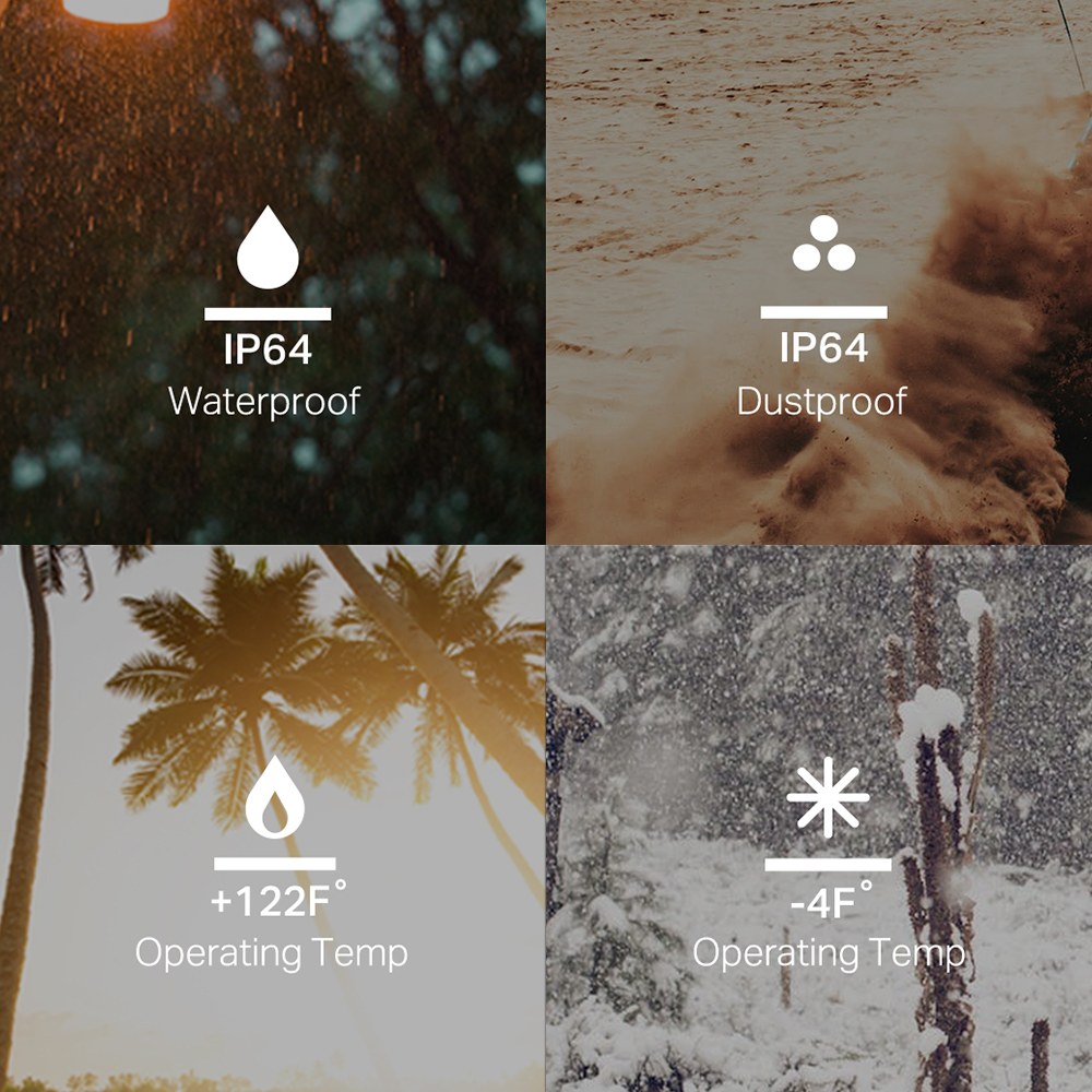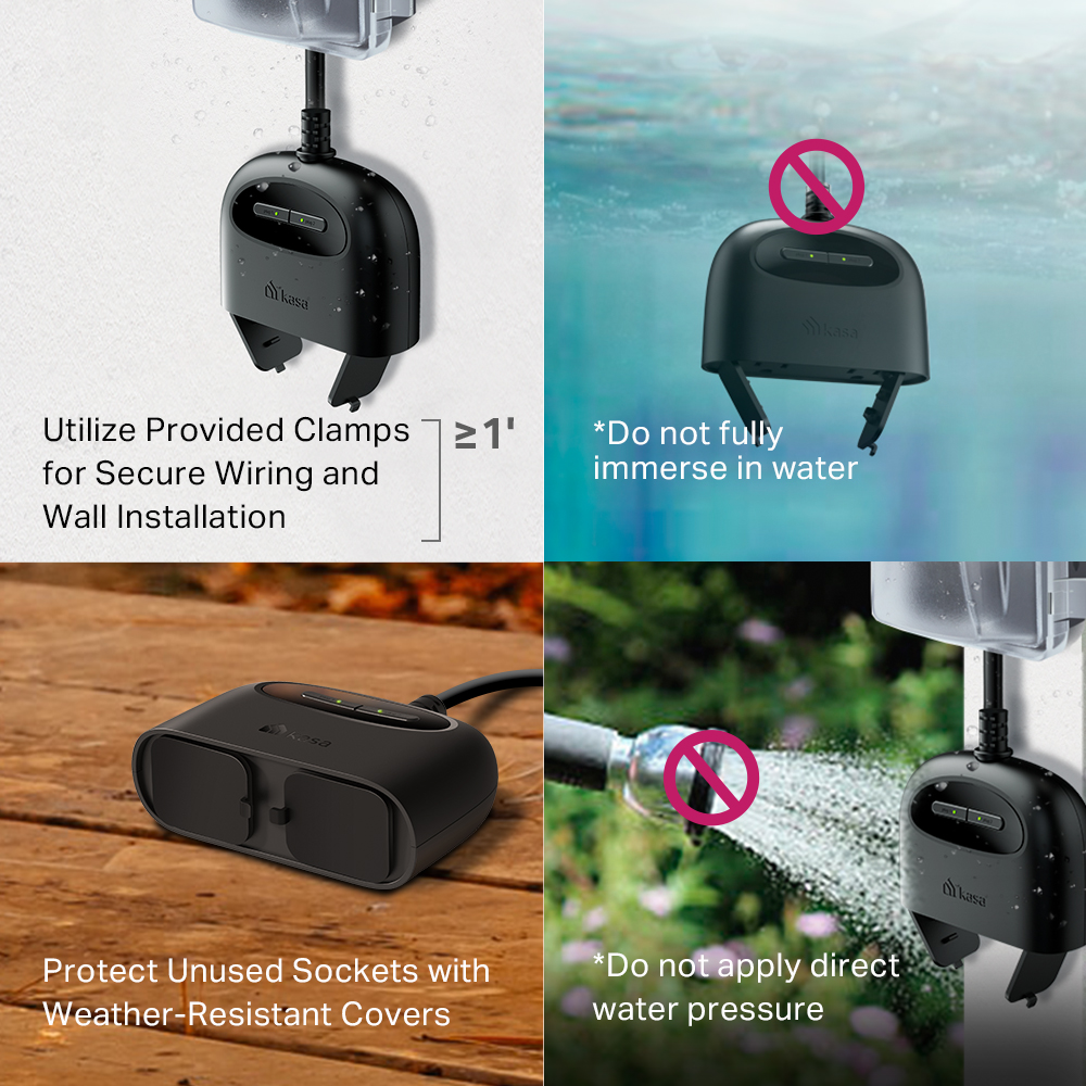 ¹Avoid water streams. Do not fully immerge. Place at least 8 inches from the ground. Use provided clamps to secure wires.