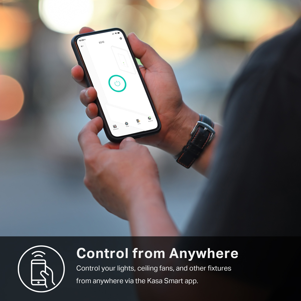 Control anything connected to your smart light switch, like lights, ceiling fans or other fixtures, from anywhere using the Kasa Smart app.