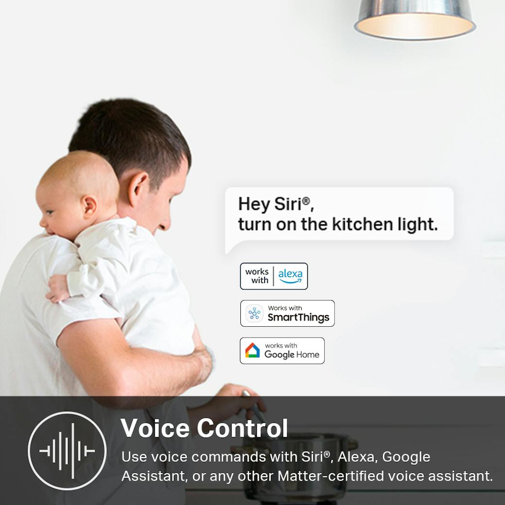 Use simple voice commands with Alexa, Siri®, Google Assistant, or any other Matter-compliant voice assistant to conveniently control connected lights without leaving your spot.