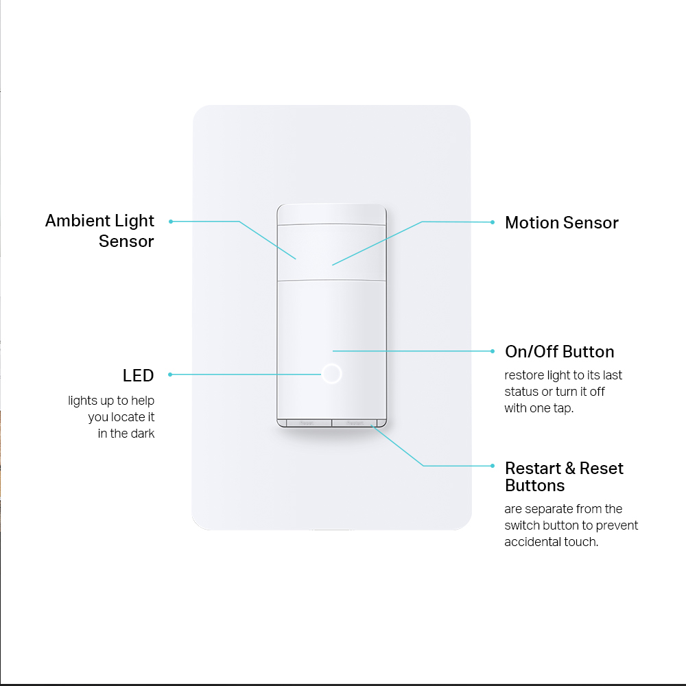 Save money and the environment by keeping the lights on only when they are needed. The Kasa Smart Light Switch works with in-built motion and ambient light sensors to ensure that light is only on when it is needed.