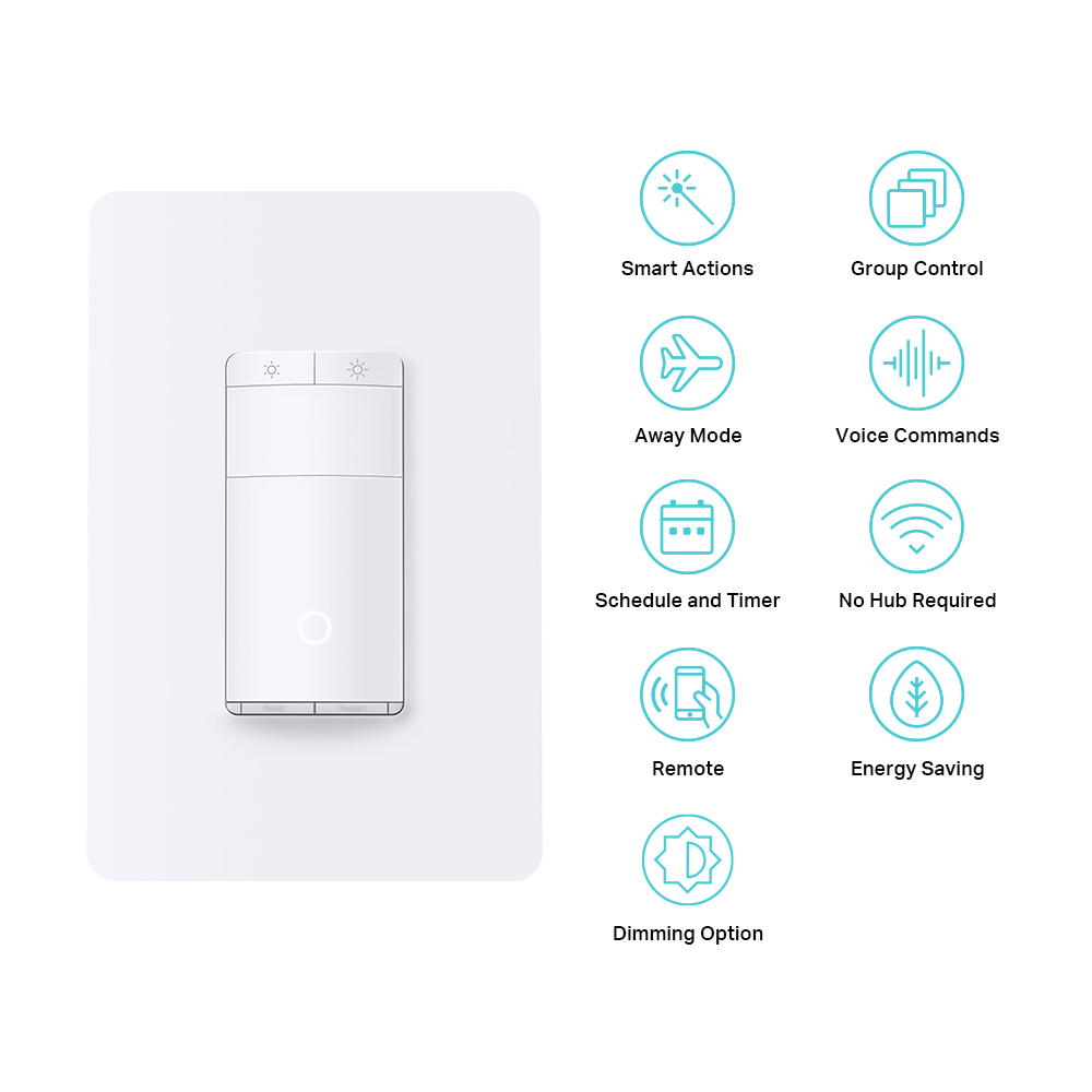 Control the Kasa Smart Light Switch using the Kasa Smart App, your preferred smart assistant or the pleasing tactile controls.