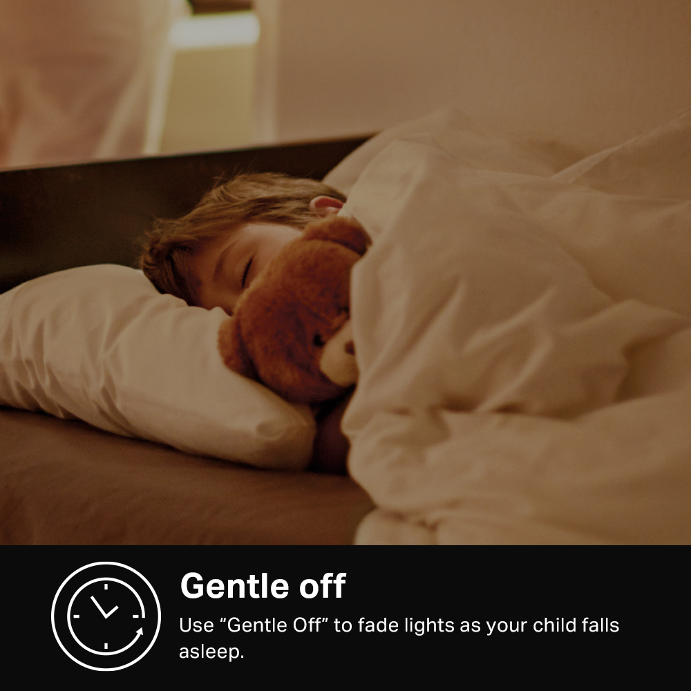 Use “Gentle Off” to fade lights as your child falls asleep. It's like making a personalized sunset for your child.