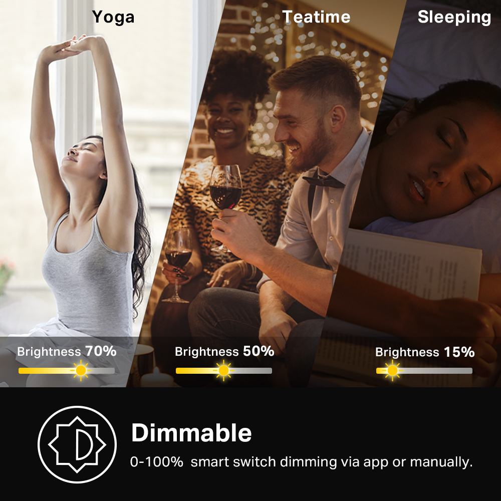 You can control any room's brightness and set the ambiance for any mood activity via the Kasa app.